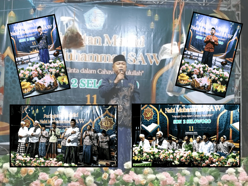 Pada hari Kamis, 11 September 2025 pukul 19.00 WIB, keluarga besar SDN 2 Selowogo menyelenggarakan peringatan Maulid Nabi Muhammad SAW. Acara ini mengangkat tema “Merajut Cinta dalam Cahaya Rasulullah”, sebagai bentuk rasa syukur sekaligus wujud kecintaan kepada junjungan kita, Nabi Muhammad SAW.